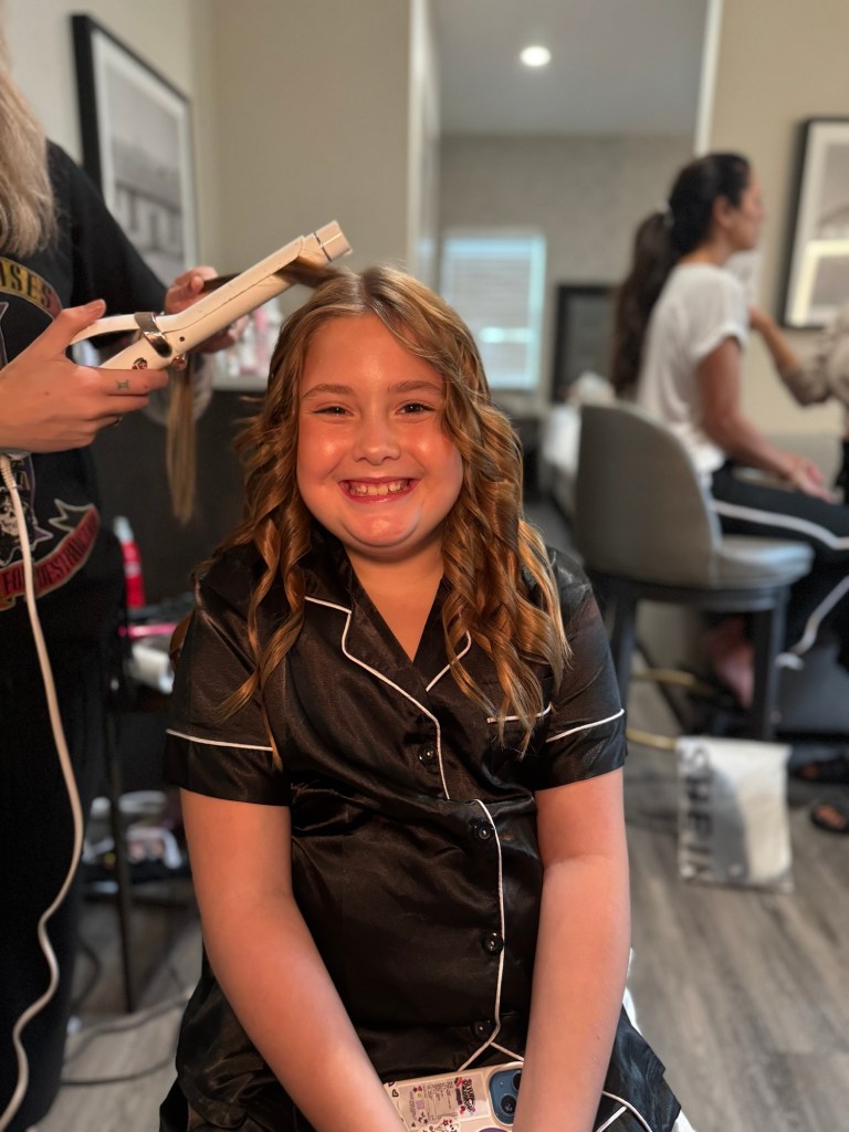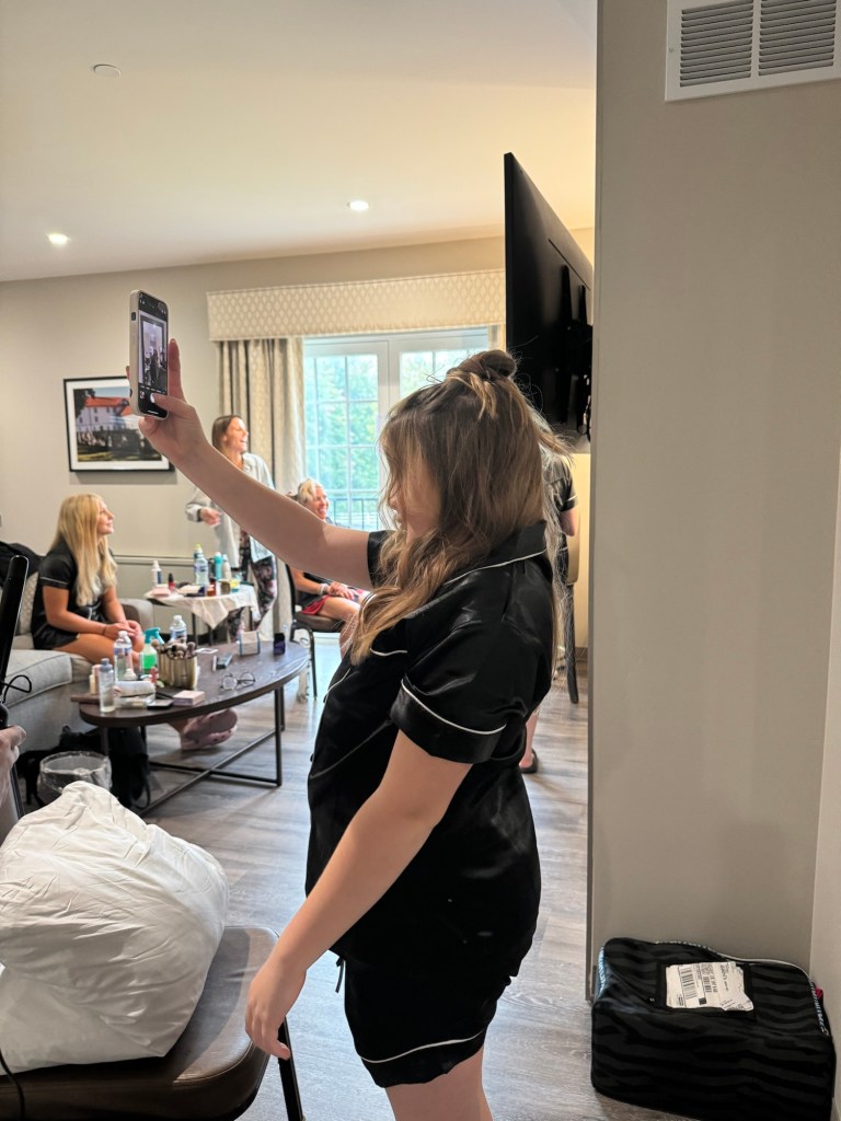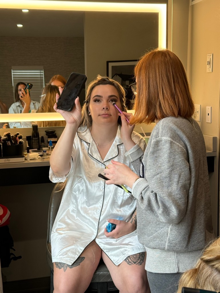 We started the day bright and early with our Breakfast & Bubbles, which included champagne, and juice and I was able to attend to Ang and her attendants throughout the day!